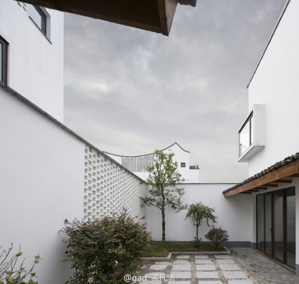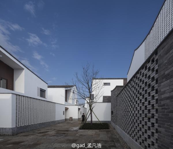在滿足了基本需求后,孟浩凡才開(kāi)始考慮,如何為這座古鎮(zhèn)保留傳統(tǒng)江南民居的神韻,又體現(xiàn)出現(xiàn)代學(xué)的美感和創(chuàng)意。他想到了畫(huà)家吳冠中。孟浩凡說(shuō),比起具象的元素,他更多考慮的是保留“氣質(zhì)”。“比如說(shuō)你看這色調(diào),色調(diào)是白墻綠瓦,中間有一些灰色系的這種磚,都是老色調(diào)的基底給我們的感覺(jué)。這種壓頂?shù)木€條,像吳冠中的畫(huà),都是很抽象的嘛。畫(huà)江南民居,他畫(huà)出來(lái)很抽象的藝術(shù)畫(huà),沒(méi)有具象的符號(hào),但是你一看這個(gè)東西它就是江南的,因?yàn)槲蓓數(shù)倪@種曲線、線條,勾勒出了江南的這種俊秀?!?/p>