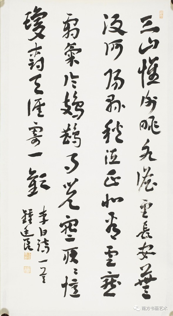 鐘廷良少年時期在外公的指導(dǎo)下學(xué)習(xí)傳統(tǒng)文化,同時學(xué)習(xí)書法和書畫鑒賞。其時碑帖讀本稀缺,便從鄉(xiāng)賢處請教受益。及至青年時期(上世紀九十年代),開始接觸晉、唐、宋、元、明、清名帖,方始涉獵顏真卿、米芾、黃庭堅及清人王鐸。然未得法,故面目凌亂。及至新世紀千禧年后(二000年后)才逐漸探求《月儀章》、《急就章》等章草法帖,再參近現(xiàn)代沈曾植、王蘧常等家藏作品后,結(jié)字漸有起色。其間,也苦臨《散氏盤》《石鼓文》《城隍廟記》《袁安碑》等篆籀名刻。