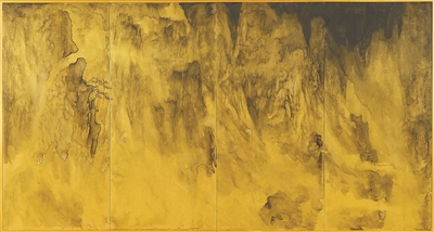 “知新”是近年系列的水墨探索,梳理丘挺的“思古求新”。其中“曠度”展廳中間還原了2010年丘挺在波士頓“與古為徒”展中《西山嵐色》與趙令穰《湖莊清夏》的呼應;以及丘挺近些年的水墨探索,尤其屏風與音樂相關(guān)的創(chuàng)作,以視覺聽覺結(jié)合的方式呈現(xiàn)。屏風《幽谷圖系列》創(chuàng)作是對山水具體的畫材形式的解構(gòu),既不抽象也不具象,試圖以水墨回到“恍兮,惚兮”的意象性。