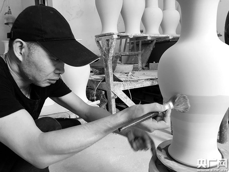 王曉峰:每道工序都不能大意,還要有點(diǎn)運(yùn)氣,突然間天上飄來(lái)一朵云,氣里或者是哪里落了一點(diǎn)鐵質(zhì)在上面,你沒(méi)辦法。所以我們景德鎮(zhèn)傳統(tǒng)藝人里邊有一句老話(huà),泥塑火燒的東西誰(shuí)能保得到,萬(wàn)里無(wú)云是很難的事情。但是我個(gè)人覺(jué)得可能我們就得做萬(wàn)里無(wú)云的東西。