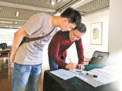 現(xiàn)場觀眾請閆國星簽名。 深圳晚報記者 秦瑤 攝