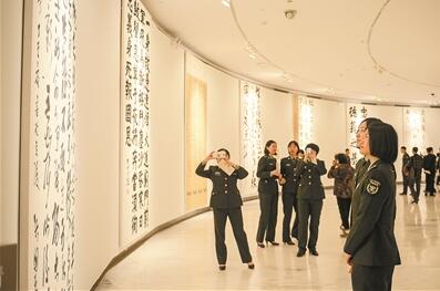記者了解到,此次展覽從全軍遴選20位書法骨干,特邀36位著名軍旅書法家,嚴(yán)格按照“定人員、定內(nèi)容、定尺幅、定書體”的標(biāo)準(zhǔn),潛心創(chuàng)作打磨,力求以形神兼?zhèn)洹⑽馁|(zhì)兼美的優(yōu)秀作品,給觀眾以強(qiáng)烈的藝術(shù)感染、深刻的思想啟迪和豐厚的精神滋養(yǎng)。