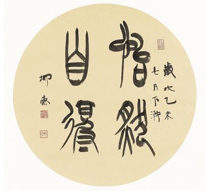 祁小春的篆書(shū)創(chuàng)作從清人入手,追求清人篆書(shū)“自帶一種學(xué)者古人格調(diào)與趣味”。他在篆書(shū)中有意識(shí)地加入行草中的用筆節(jié)奏變化,增強(qiáng)篆書(shū)的書(shū)寫(xiě)性與流暢性,與刻意制造金石斑駁痕跡的樣式拉開(kāi)了距離。在形制上,祁小春也多用最為傳統(tǒng)和簡(jiǎn)潔的對(duì)聯(lián)、條幅,舍棄一切繁復(fù)的裝飾。不論是筆法還是形制都將視角聚焦到書(shū)法與書(shū)寫(xiě)者本身,追求心意的暢快表達(dá)。他的作品用筆熟練,取勢(shì)舒展,筆力遒勁,樸正而清雅,洋溢著濃厚的書(shū)卷氣,表現(xiàn)出一種不阿流俗的文化姿態(tài)。