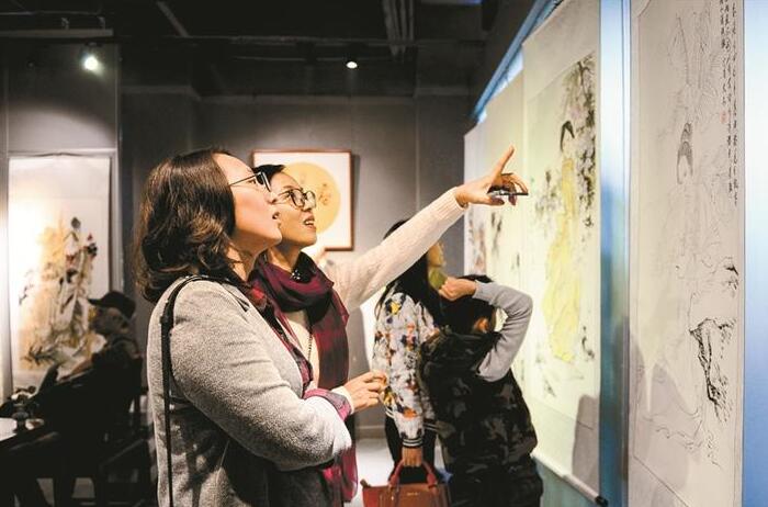 記者在現(xiàn)場看到,展覽精品匯萃不斷,內(nèi)容豐富,既有山水畫又有人物畫,也涵蓋了工筆、寫意、花鳥多種類型,集中呈現(xiàn)了戴培仁師生的藝術水平與藝術追求。