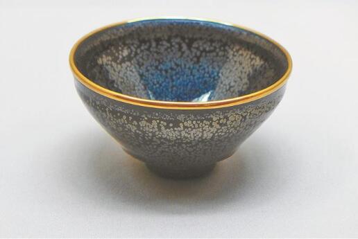 大阪市立東洋陶瓷美術(shù)館收藏的宋代建窯“油滴天目”。據(jù)說是豐臣秀吉養(yǎng)子豐臣秀次用過的茶碗。