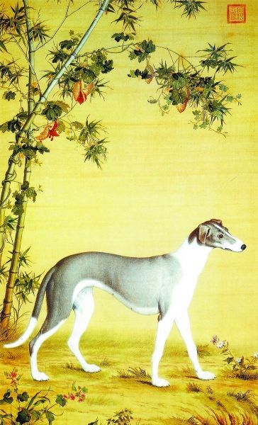 自宋代始花鳥畫獲得空前發(fā)展,皇家畫院極盛,追求精工寫實,動物畫這時得以獨立出來,單獨的犬畫開始出現(xiàn),現(xiàn)藏于北京故宮的宋李迪《獵犬圖》即是一幅不可多得的作品。他畫的《獵犬圖》造型比例精確,明暗層次清晰,立體感極強,犬的神態(tài)與動態(tài)尤其傳神,將獵犬盯視前方漫步而行的感覺刻畫得入木三分,堪稱形神俱佳之作??梢钥闯霎嫾也粌H具有高超的繪畫表現(xiàn)技巧,對狗的生活習(xí)性也有很深的了解,該作品體現(xiàn)了宋代畫家的非凡寫實功力與水平?!澳纤嗡募摇敝坏膭⑺赡暝嬤^一幅風(fēng)俗畫《補納圖》,畫中一老僧正在專注穿針引線補綴,床榻前一小狗席地而臥,似仰頭目視主人,小狗的刻畫堪稱神來之筆,寥寥幾筆勾勒,狗便活脫而出。