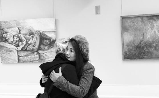 在基金會(huì)舉辦的畫(huà)展上,劉簡(jiǎn)與病友深情相擁。