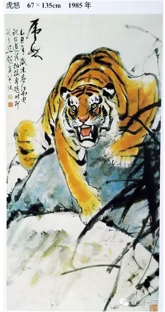 彭友善一輩子畫虎無數(shù),光百虎圖就達(dá)五幅之多,他的虎有別于歷代與當(dāng)代任何一位畫虎大家,彭友善的虎是有骨的虎(懂解剖、能表現(xiàn)),是帶風(fēng)的虎(善茅草、有功底),是寫意的虎(中國風(fēng)、強(qiáng)概括),是有喜怒哀樂生命體征的擬人虎(內(nèi)生命、全視角),是為了振奮民族精神的能量虎(應(yīng)時局、提士氣),更是借虎言志的情懷虎(畫自己、多維度)。彭友善早年因人物成名,晚年以畫虎立世,為躲避政治的干擾,他多以擬人手法抒發(fā)自己內(nèi)心的情感,因有深厚的西畫基礎(chǔ)和國畫功底,故他的虎與眾不同,獨具魅力。是當(dāng)之無愧的中國虎王。