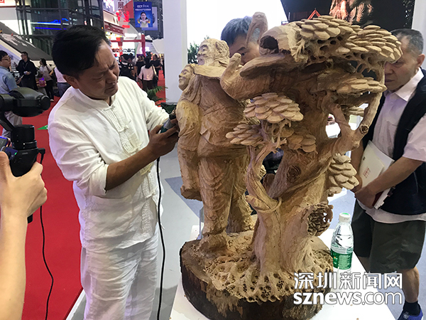 根藝美術(shù)大師宋智勇現(xiàn)場演示根雕工藝