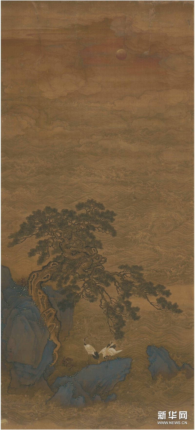 徐玫,清初畫家。字采若,號(hào)華塢,蘇州人。主工花鳥、人物,兼事山水,賦色妍雅,生動(dòng)盡致。善臨摹古本,與柳遇并挾盛名,“兩人凡臨摹古本逼真處,可謂之翻身鳳凰也”。因其技藝出色,后供奉內(nèi)廷,曾參與繪制《康熙南巡圖》,亦有《春宮圖》組畫存世,人物、園庭、植景無所不精。唐代無可和尚詩:“與鶴來松杪,開煙出海波?!毕生Q、松樹、旭日、海波,這種組合象征著長(zhǎng)生不老,延年益壽,為宮中祝壽的標(biāo)準(zhǔn)樣式,類似圖式也出現(xiàn)在郎世寧筆下。雖然此畫是“壽與天齊”的命題創(chuàng)作,但從畫風(fēng)可以看出,徐玫不僅繼承了宋人畫法,而且注重寫生,凡筆到處,無不古意而生動(dòng),難怪王石谷對(duì)他有“立法精妙,直入宋元名家之室,雖仇(英)唐(寅)諸公,亦不得專美于前”的贊譽(yù)。