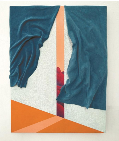 另一方面,青年藝術(shù)家們的創(chuàng)作又明顯與深圳這個(gè)急劇擴(kuò)張的城市都市化景象發(fā)生了疊合。比如林海東的《紅山》,運(yùn)用布面油畫與真實(shí)的絨布營造了一道門縫外的風(fēng)景,暗紅的土地帶著一束光似乎就是它本身的倒影;江安使用極簡的方式,彎曲的鐵條、折疊的木板、簡單的霓虹燈便組成了他的《木門》;武學(xué)斌將無數(shù)由遠(yuǎn)及近的立方體組成了他的《城市》,矛盾的空間、散亂的信息以及兩側(cè)高聳的堅(jiān)墻述說了置身于城市之中人的壓力。