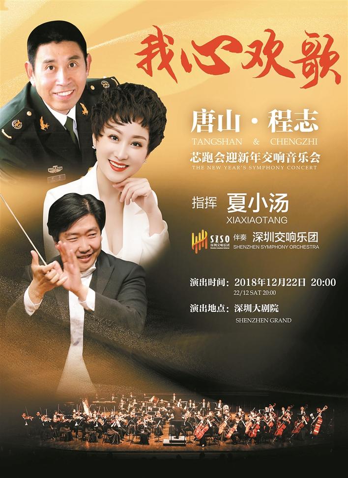 深圳晚報2018年12月13日訊 12月22日,“我心歡歌”唐山·程志音樂會將唱響深圳大劇院。本場音樂會由著名指揮家夏小湯執(zhí)棒,深圳交響樂團(tuán)演奏。當(dāng)晚,深圳本土歌唱家唐山和國內(nèi)著名男高音程志將為觀眾獻(xiàn)上多首中外經(jīng)典名曲和個人保留曲目。