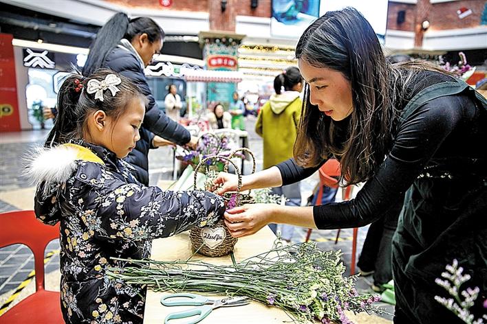 活動現(xiàn)場,市民在體驗花藝DIY。