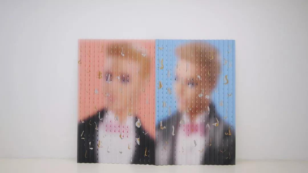 《In your eyes》光敏樹(shù)脂,丙烯,絨毛粉,29.7x42x0.25cm,2018