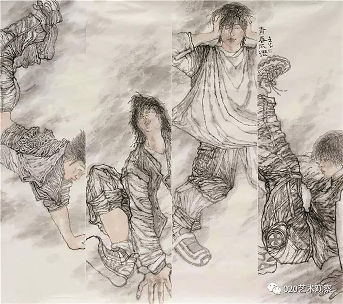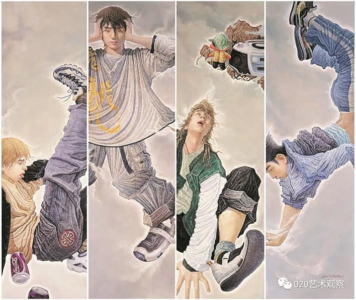據(jù)悉,原作正是深圳市福田區(qū)美術家協(xié)會主席張闖《2004—街舞》布面油彩,有所不同的是涉嫌抄襲的作品是國畫。從細節(jié)對比上看,作品相似度極高。此外,涉嫌抄襲的作品的方向與張闖的原作相反。有人猜測,涉嫌抄襲的作者是將張闖《2004—街舞》通過電腦制作反轉過來,或者是投影后制作完成作品的。