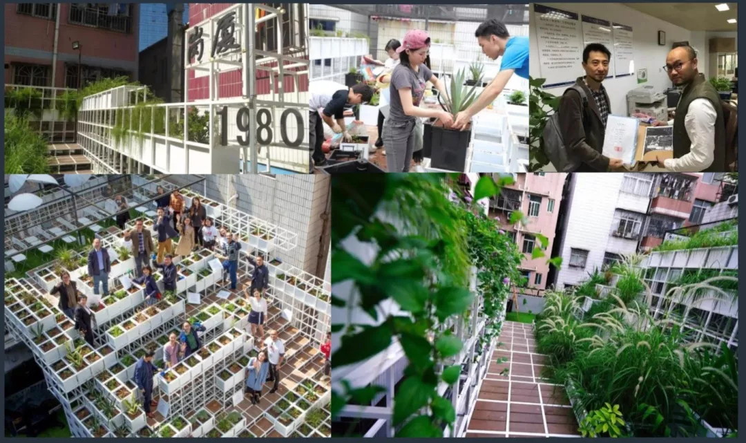 來自本地智慧的聯(lián)合創(chuàng)始人謝克非先生介紹說,作為城中村改造的實(shí)踐者,我們在做就是如何在這些矛盾中獲得共生?;蛘哒f,如何把所有矛盾點(diǎn)結(jié)合起來,讓城中村可以可持續(xù)地發(fā)展。所以在2018年3月聯(lián)合大自然保護(hù)協(xié)會(TNC)、桃花源生態(tài)保護(hù)基金會、深圳市城市規(guī)劃設(shè)計(jì)研究院、聯(lián)合公設(shè)發(fā)布了綠色天臺:愚公計(jì)劃2.0——崗廈1980海綿城市綠色屋頂示范項(xiàng)目。這個(gè)綠植天臺不僅是能夠美化環(huán)境,截存雨水、循環(huán)灌溉綠植等,更重要的是我們希望它作為一個(gè)平臺,把NGO的理念注入城中村,讓大家把對城中村的注意力從貧富懸殊、拆遷轉(zhuǎn)移到綠色環(huán)保,促進(jìn)可持續(xù)的發(fā)展。這里不僅是個(gè)景觀的平臺,更是內(nèi)容發(fā)動(dòng)機(jī),能夠持續(xù)地產(chǎn)生更多的內(nèi)容。通過藝術(shù)、教育、公益等不同板塊的活動(dòng),以內(nèi)容的方式,把文化、環(huán)保、可持續(xù)發(fā)展等的信號不斷在這個(gè)點(diǎn)上發(fā)散出去,讓大家重新認(rèn)識城中村,從持續(xù)性的內(nèi)容信息實(shí)現(xiàn)社區(qū)營造,服務(wù)不同階層的人,讓更多人覺得環(huán)保、教育這件事情其實(shí)是非常有趣的,不生硬的,大家會主動(dòng)繼續(xù)攜手服務(wù)社區(qū)。