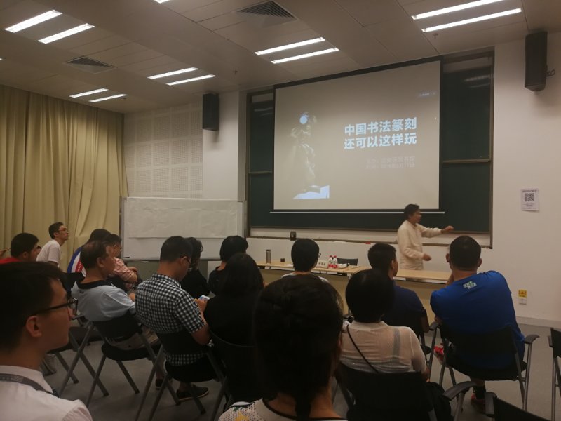 在2個小時的講座中,鐘國康妙語連珠,用生動幽默的語言將博大精深的書法篆刻文化表現(xiàn)得淋漓盡致,講座現(xiàn)場掌聲連連。鐘國康認為,書法篆刻之術(shù),只有筆性、墨性、石性、紙性、心性,全方位嚴謹,筆力勁駿,心手相應,技藝熟練,才能做到庖丁解牛,勢如破竹,可進可退,正可謂“惟習之至熟,自可心手相應”。他還現(xiàn)場潑墨揮毫,演示篆書的寫法,詳細講解并現(xiàn)場演示了篆刻的方法,重點分享自己在單刀法和雙刀法上的獨特見解。單刀法要“有多狠刻多狠,有多猛刻多猛,有多深刻多深,有多長線條刻多長線條”,而雙刀法即在“單刀之回馬槍重刻一遍相反之單刀法”。一些幸運的書法、篆刻愛好者還通過搶答的方式,獲贈書法篆刻作品。(通訊員 孫善文)