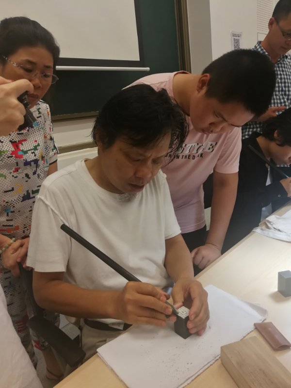 著名書法篆刻家鐘國康在講座現(xiàn)場演示篆刻的方法