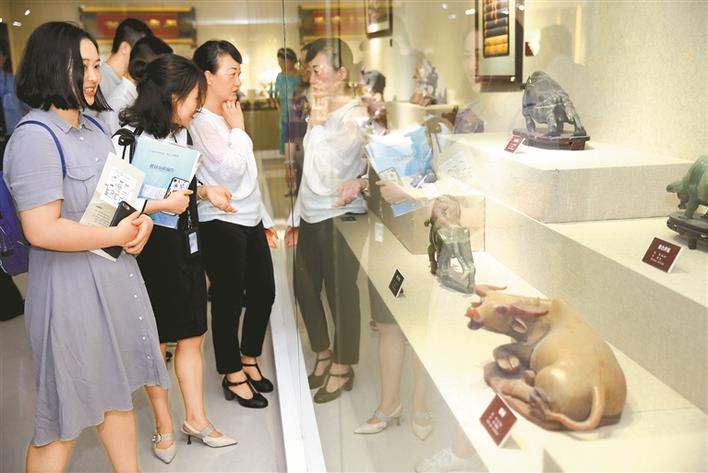 牛雕、牛繡、牛畫……厲有為無償捐贈的1400余件牛藝術(shù)品來自不同的國家和地區(qū),形成于不同的歷史時期,包括玉石、金屬、陶瓷、竹木、刺繡、剪紙、書畫等各種材質(zhì)和工藝,具有重要的歷史文化價值和深刻的精神內(nèi)涵。比如,有一尊戰(zhàn)國銅牛的收藏品,造型生動、設(shè)計精巧、工藝考究,牛脖子上雕刻的是長冠鳳圖案,牛背上雕刻的是太陽圖案,牛身上是龍鳳紋。