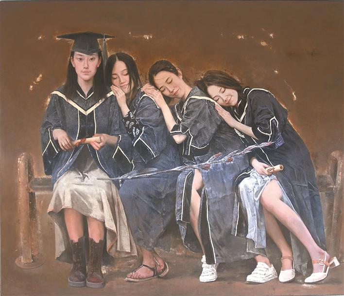 比如,董小明的《真水無香》展現(xiàn)了他在水墨領(lǐng)域持續(xù)不斷的探索精神;梁宇的《前方的信號(hào)》以鐵路元素為題材,畫面凝練,意喻強(qiáng)烈,催人奮進(jìn);其加達(dá)瓦的版畫《對(duì)眸》描述了母親與孩子彼此注視的溫暖時(shí)刻;陸聲設(shè)的版畫《中國(guó)電子一條街》,對(duì)焦深圳華強(qiáng)北普通人的面孔;余澎的作品《和而不同》意蘊(yùn)深遠(yuǎn),以視覺形象對(duì)和而不同做了注腳;劉文的《暢想青春》描述了四個(gè)女孩拍攝畢業(yè)照的溫馨情景,展現(xiàn)了青春的活力;吳登軍的《SZ城中村》展現(xiàn)了城中村井然有序的場(chǎng)景;楊光的《未來石》表達(dá)了藝術(shù)家對(duì)未來的大膽想象。