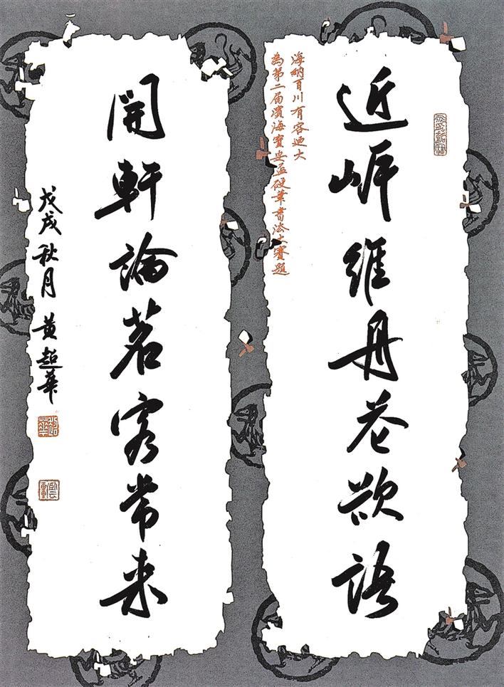 硬筆行書近舉維舟花欲語,聞軒論茗客常來。寶安區(qū)硬筆書法協(xié)會(huì)顧問黃超華