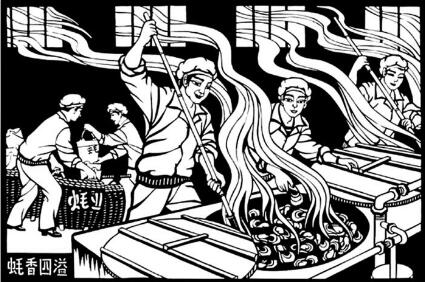饒凱玉從來(lái)沒(méi)學(xué)過(guò)國(guó)畫,也沒(méi)接受過(guò)正規(guī)的美術(shù)教學(xué)。在集訓(xùn)一個(gè)月期間,老師給她一本書,建議她向國(guó)畫發(fā)展。她發(fā)現(xiàn)書里有幾幅小剪紙圖很有趣,突然勾起她的創(chuàng)作靈感,為什么不畫農(nóng)村題材呢?她決定創(chuàng)作農(nóng)村“四員”(出納、會(huì)計(jì)、保管、記工員),“四員”是當(dāng)時(shí)典型的社會(huì)人物。“我不要畫國(guó)畫,要刻紙成畫?!别垊P玉說(shuō)。當(dāng)時(shí),她先用毛筆在紙上勾勒出形象,修改定稿,后用印寫紙反轉(zhuǎn)復(fù)印在刻紙上,再用刀刻紙成畫。
