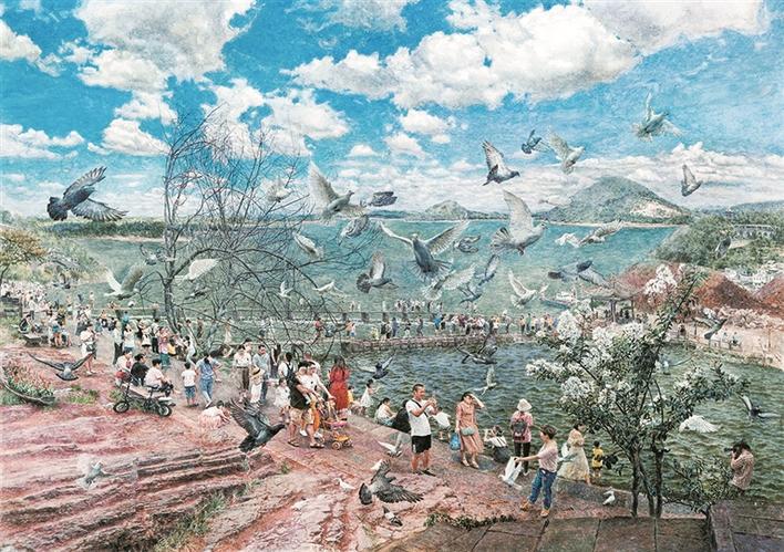 記者了解到,此次展覽的9件獲提名獎的作品都是經(jīng)評委會多次認真評定,選出的具有代表性的作品。比如,畫家馮衛(wèi)軍創(chuàng)作的《疊·G時代》,作品中有對當今時代前行發(fā)展中城市與環(huán)境問題的思考,創(chuàng)作者善于用新的材料和新的藝術(shù)創(chuàng)作方式來表現(xiàn)對時代的認識;李向兵《茶館國事》其獨特之處在于他對生活本身和社會最廣泛問題的關(guān)注和表達,更顯示了他作為一個當代藝術(shù)家的藝術(shù)擔當和社會責(zé)任。