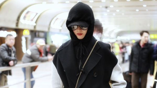 2017年12月14日,何穗現(xiàn)身機(jī)場(chǎng),手插口袋御寒戴白色羽絨帽喜感足。