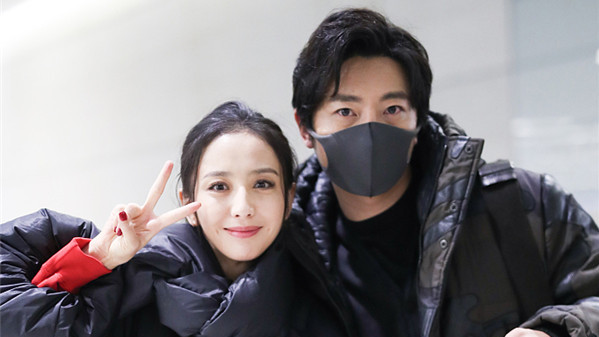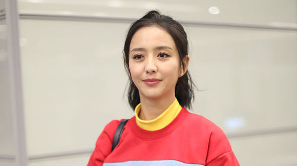 徐海喬機(jī)場秀大長腿 紅色羽絨服個(gè)性時(shí)髦