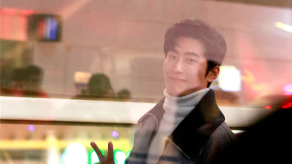2017年12月11日,無錫,竇驍灰大衣帥氣現(xiàn)身無錫機(jī)場,見攝影師拍圖隔著玻璃比V,暖男無疑了!