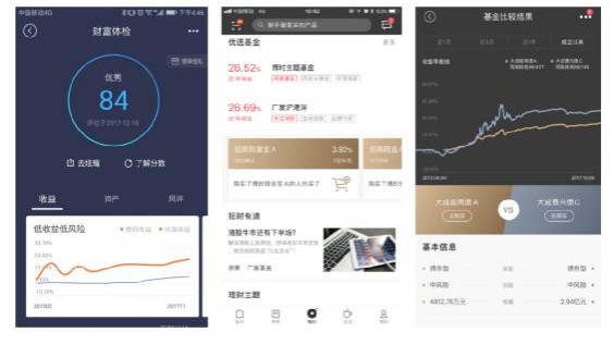 什么類別的理財(cái)產(chǎn)品適合你?高風(fēng)險(xiǎn)高收益or低風(fēng)險(xiǎn)低收益?來做個財(cái)富體檢吧,以前只能前往網(wǎng)點(diǎn)和客戶經(jīng)理面對面聊天,才能享受的財(cái)富體檢報(bào)告及資產(chǎn)配置建議,現(xiàn)在在招商銀行App6.0里就能完成,為你框定適合的投資類別。選定大類以后,哪幾支產(chǎn)品表現(xiàn)更好、值得關(guān)注?你既可參考大家都投的熱門理財(cái)主題,也可根據(jù)智能推薦,選擇和你搜索、購買相似產(chǎn)品或資產(chǎn)結(jié)構(gòu)相近的人投資的產(chǎn)品。選定了感興趣的幾支產(chǎn)品,可用基金比較器,直觀對比感興趣的兩支基金的關(guān)鍵信息,業(yè)績表現(xiàn)、歷史走勢、交易規(guī)則、基金公司概況等一目了然,還可用定投模擬器,直觀查看這支產(chǎn)品在某一時期內(nèi)的定投表現(xiàn),輕松選出最適合的一支產(chǎn)品。