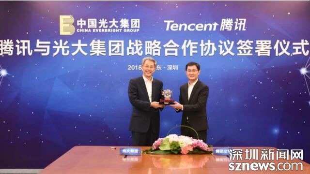 簽約儀式前,雙方進(jìn)行了友好、深入的會(huì)談。李曉鵬對(duì)馬化騰主席、騰訊公司一直以來(lái)給予光大的關(guān)心與支持表示衷心感謝。他表示,光大集團(tuán)1983年在香港創(chuàng)辦,是國(guó)家改革開(kāi)放的橋頭堡,產(chǎn)融結(jié)合的先行者,歷經(jīng)改革重組,現(xiàn)已發(fā)展成為具有金融全牌照、產(chǎn)融結(jié)合、陸港兩地優(yōu)勢(shì)的大型國(guó)有金融控股集團(tuán)。下一步,光大希望依托騰訊先進(jìn)的互聯(lián)網(wǎng)、云計(jì)算等技術(shù),加強(qiáng)信用卡、云繳費(fèi)、理財(cái)?shù)茹y行業(yè)務(wù)領(lǐng)域以及旅游、生態(tài)廁所、環(huán)保等實(shí)業(yè)領(lǐng)域合作。共同成立“科技金融創(chuàng)新實(shí)驗(yàn)室”,研究共推新科技產(chǎn)業(yè)基金。希望雙方共同努力,深化務(wù)實(shí)合作,不斷聚焦創(chuàng)新,開(kāi)啟合作新篇章。