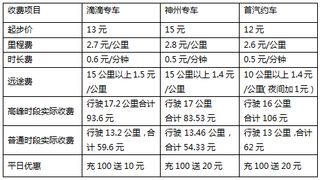 從各家平臺(tái)的價(jià)格列表來(lái)看,同樣選擇20萬(wàn)級(jí)別專車,滴滴起步價(jià)為13元,普通時(shí)段里程費(fèi)為2.7元/公里,時(shí)長(zhǎng)費(fèi)為0.6元/分鐘,神州起步價(jià)為15元,普通時(shí)段里程費(fèi)為2.8元/公里,時(shí)長(zhǎng)費(fèi)為0.5元/分鐘,首汽起步價(jià)及里程費(fèi)分別為12元與2 .6元/公里,在普通白天時(shí)段綜合對(duì)比,這里三家都沒(méi)有呈現(xiàn)特別突出的價(jià)格優(yōu)勢(shì)。