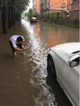 整個(gè)上午金浩田都處于連續(xù)不斷接收案件、處理案件中,“馬上過來!”是金浩田說的最多的一個(gè)詞語。中午時(shí)分,金浩田接到報(bào)案,一車輛行駛過程中熄火了,客戶被困在水中無法下車,萬分焦急。金浩田來不及吃午餐就火速趕往現(xiàn)場并聯(lián)系施救。到達(dá)現(xiàn)場后,他趟著過膝的臟水,進(jìn)入水淹區(qū)域查勘現(xiàn)場。由于車輛已熄火停車,金浩田又與趕到現(xiàn)場的拖車司機(jī)一起將車輛推上拖車,駛離困境。不到30分鐘,金浩田將受損車輛處理完畢,將車輛損失降到最低。在結(jié)束了一天的查勘工作回到辦公地時(shí),金浩田已是泥巴裹滿褲腿,汗水濕透衣背,但他卻說,“聽到客戶說‘你們來了,我們就安心了’,我們就感覺特別充實(shí)和幸福。”