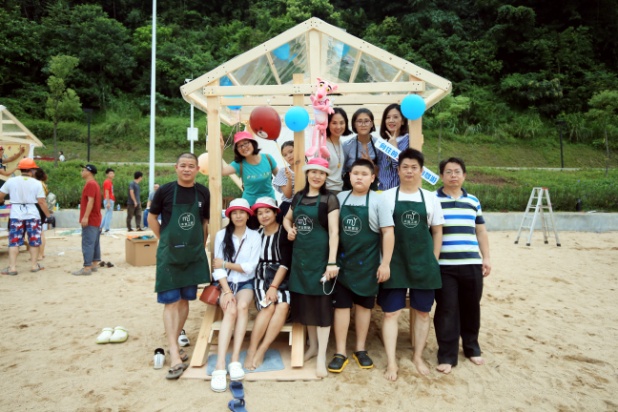 體驗(yàn)造一座休憩木屋。在專(zhuān)業(yè)木工師傅指導(dǎo)下,大人、孩子們用錘子、螺絲、卡尺等工具,將木板一塊塊牢牢拼接,從無(wú)到有、搭建出屬于自己的木屋,并用吊燈、氣球、窗簾等裝飾,打造了湖邊最亮麗的木屋風(fēng)景線。