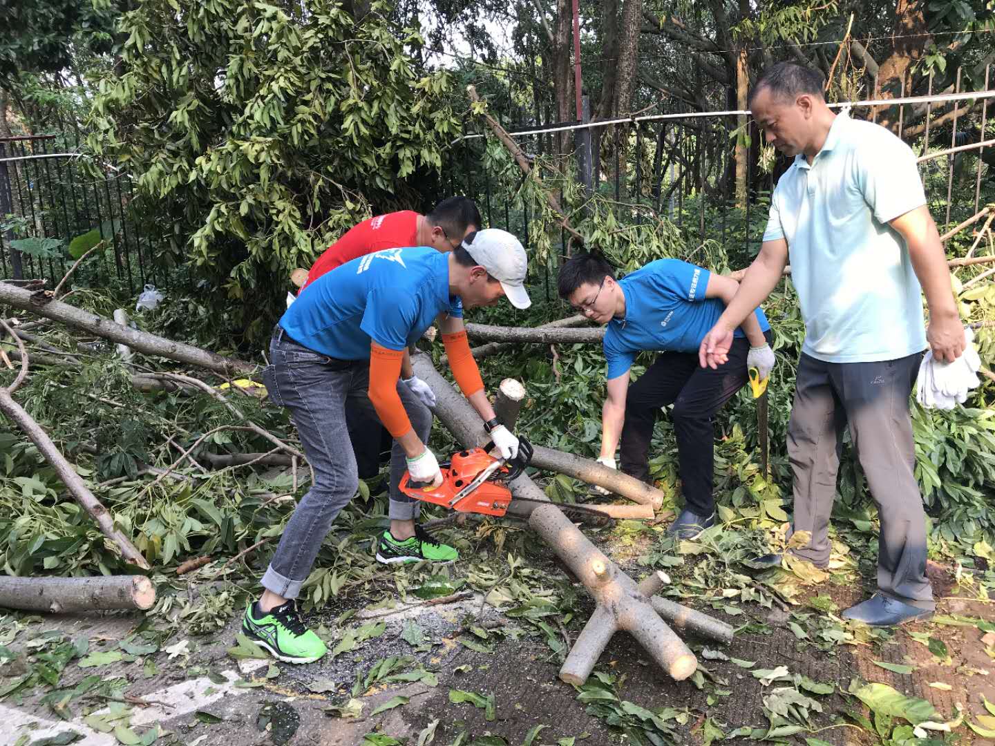 當天下午,分公司還開展了災后愛心活動。剛剛過去的周末,深圳經歷了超強臺風“山竹”的強烈侵襲,大量樹木折損、倒伏路面,影響市民交通出行。分公司當即組織黨員干部“人人動手,清潔家園,美麗深圳”,分公司黨委書記、總經理陳峰先生,紀委書記、副總經理梁曉燕女士帶領大家走上福田區(qū)蓮花一村街頭,鋸斷折損樹木、扛運木頭、清理枝葉、運輸垃圾,為清潔路面、暢通交通出一份力。臺風無情,太保有愛,分公司以實際行動踐行社會責任,彰顯太保擔當。