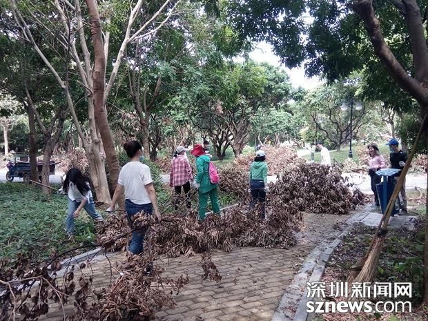 9月22日,臺(tái)風(fēng)過(guò)后小長(zhǎng)假的第一天,深圳農(nóng)村商業(yè)銀行積極響應(yīng)深圳市城管局和人大代表“人人行動(dòng),一起清潔美麗家園”的倡議,在全行發(fā)起了“愛(ài)心清理中心公園,還深圳一片干凈祥和”的志愿活動(dòng),全行70多名員工和家屬自發(fā)組成義工隊(duì),利用中秋小假期來(lái)到深圳市中心公園,積極參與搬運(yùn)殘枝斷木,清潔落葉垃圾的活動(dòng)。在清理公園路障過(guò)程中,深圳農(nóng)商行員工分工明確,男士負(fù)責(zé)倒塌樹(shù)枝、樹(shù)樁的疏通與清理,女士則主要負(fù)責(zé)零散枝丫、落葉的清掃。而當(dāng)清理至公園受災(zāi)最嚴(yán)重區(qū)域時(shí),深圳農(nóng)商行義工隊(duì)成員齊上陣,兩手并用,或是用力拖拽巨大的倒塌樹(shù)枝,或是通力協(xié)作抬抱沉重的實(shí)木樁,來(lái)來(lái)回回不斷將攔路樹(shù)枝收拾整齊歸攏到路邊,以方便公園管理處人員后續(xù)處理。此次清理工作持續(xù)了約3小時(shí),基本恢復(fù)了公園中心區(qū)綠道的通暢與整潔。路過(guò)的行人得知他們是義務(wù)進(jìn)行清理時(shí),無(wú)不駐足稱贊,而參與此次活動(dòng)的所有深圳農(nóng)商行人也同樣為自己感到驕傲。