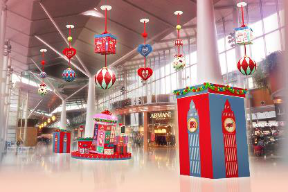 據(jù)介紹,圣誕節(jié)期間東薈城名倉(cāng)店將以英國(guó)國(guó)旗上的紅藍(lán)白為主調(diào),在場(chǎng)內(nèi)掛滿十多組吊飾,各處均充滿英倫氣息。而2樓天橋位置,更將化身為倫敦街頭,有大本鐘報(bào)上八個(gè)城市的時(shí)間;傾斜的電話亭玩味十足,滿布流行藝術(shù)圖案,而顯示屏也會(huì)不斷送上圣誕祝福;還有換上圣誕新裝的英國(guó)士兵,整裝與大家互動(dòng)過(guò)圣誕。