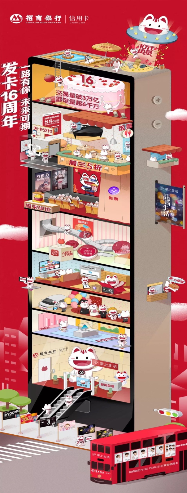 據(jù)悉,圖里這棟手機大廈,承載了招行信用卡和客戶們的共同回憶。各種靚麗的卡片、飯票、影票、旅游活動,承包了客戶們的吃喝玩樂;貼心的智能客服和 AI實驗室,為客戶提供了溫暖的服務;還有客戶們都熟悉的10元風暴、水電煤等生活繳費、智能助理、掌上商城、積分禮遇等。
