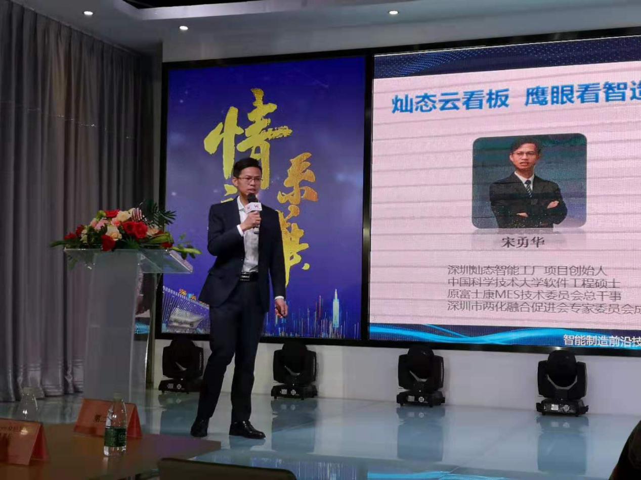 燦態(tài)信息總經(jīng)理宋勇華是原富士康集團MES技術(shù)委員會總干事,他以18年富士康智能制造系統(tǒng)實踐經(jīng)驗、100多個工廠信息化智能項目沉淀工作經(jīng)歷介紹了面向中小企業(yè)的智能制造落地方案。其解決方案依據(jù)他原創(chuàng)的三屏看智造理念,即“燦態(tài)鷹眼云看板” SaaS產(chǎn)品,打造符合企業(yè)發(fā)展實際需要和高性價比的智能化平臺,助力中小企業(yè)智能化務(wù)實落地。