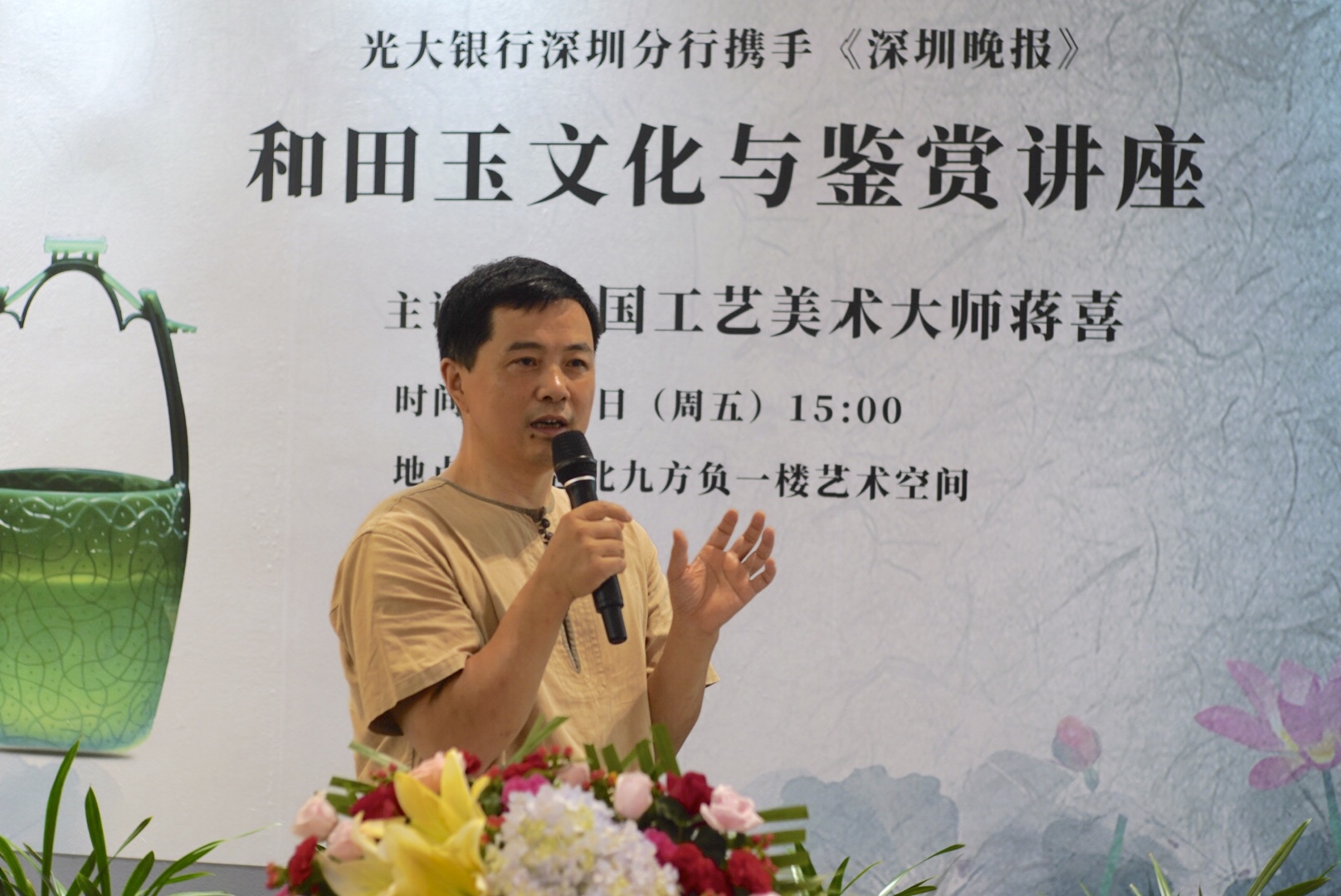 深圳新聞網7月5日訊(記者朱琳 通訊員李昕)7月5日,光大銀行深圳分行聯(lián)合深圳晚報,共同推出中國工藝美術大師蔣喜“和田玉文化與鑒賞”講座?;顒友堉袊に嚸佬g大師、中國玉石雕刻大師、國家非物質文化遺產(蘇州玉雕)代表性傳承人、研究員級高級工藝美術師蔣喜先生,向光大銀行的VIP客戶及市民,剖析和田玉文化的價值,傳授和田玉的鑒賞方法,弘揚中華傳統(tǒng)文化。