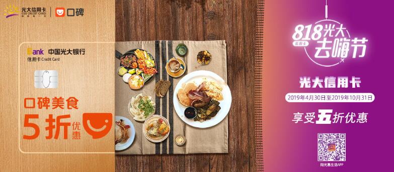 活動三:2019年6月1日-2019年8月31日,每周五、周六、周日10:00至24:00點整活動期間支付寶實名認證個人用戶在口碑指定商圈,用戶使用支付寶賬戶綁定光大銀行信用卡,通過口碑手機客戶端或支付寶-口碑頁面購買線上商圈通用券,或進行當面付支付消費,可有機會享受5折優(yōu)惠,最高封頂優(yōu)惠50元,活動期間每天限20000個優(yōu)惠名額,用完即止。活動期間同一用戶每天限享1次優(yōu)惠,同一用戶每月最多可享受2次優(yōu)惠。