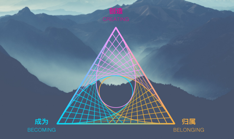 在這兩個維度的基礎上,陳瑋教授增加了Creating“創(chuàng)造”這個維度。Creating“創(chuàng)造”,是我給這個世界留下的精神和物質遺產,世界因你而變。在成為和歸屬完成之后,人生的使命是創(chuàng)造,是我們給這個世界帶來的更新與升級。當我們問,未來會是什么樣?我們真正要問的是:我,將為這個世界創(chuàng)造什么?