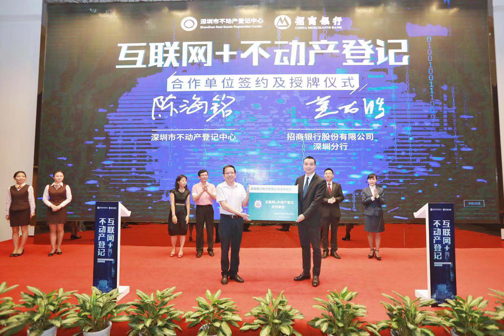 深圳新聞網(wǎng)2019年9月24日訊 今日,深圳市不動(dòng)產(chǎn)登記中心與招商銀行深圳分行舉行“互聯(lián)網(wǎng)+不動(dòng)產(chǎn)登記”合作單位授牌儀式,并同步上線“不動(dòng)產(chǎn)抵押登記全程電子化”在線申請(qǐng)服務(wù)系統(tǒng),為企業(yè)和市民提供在線辦理抵押權(quán)首次登記和抵押權(quán)注銷(xiāo)登記服務(wù)。
