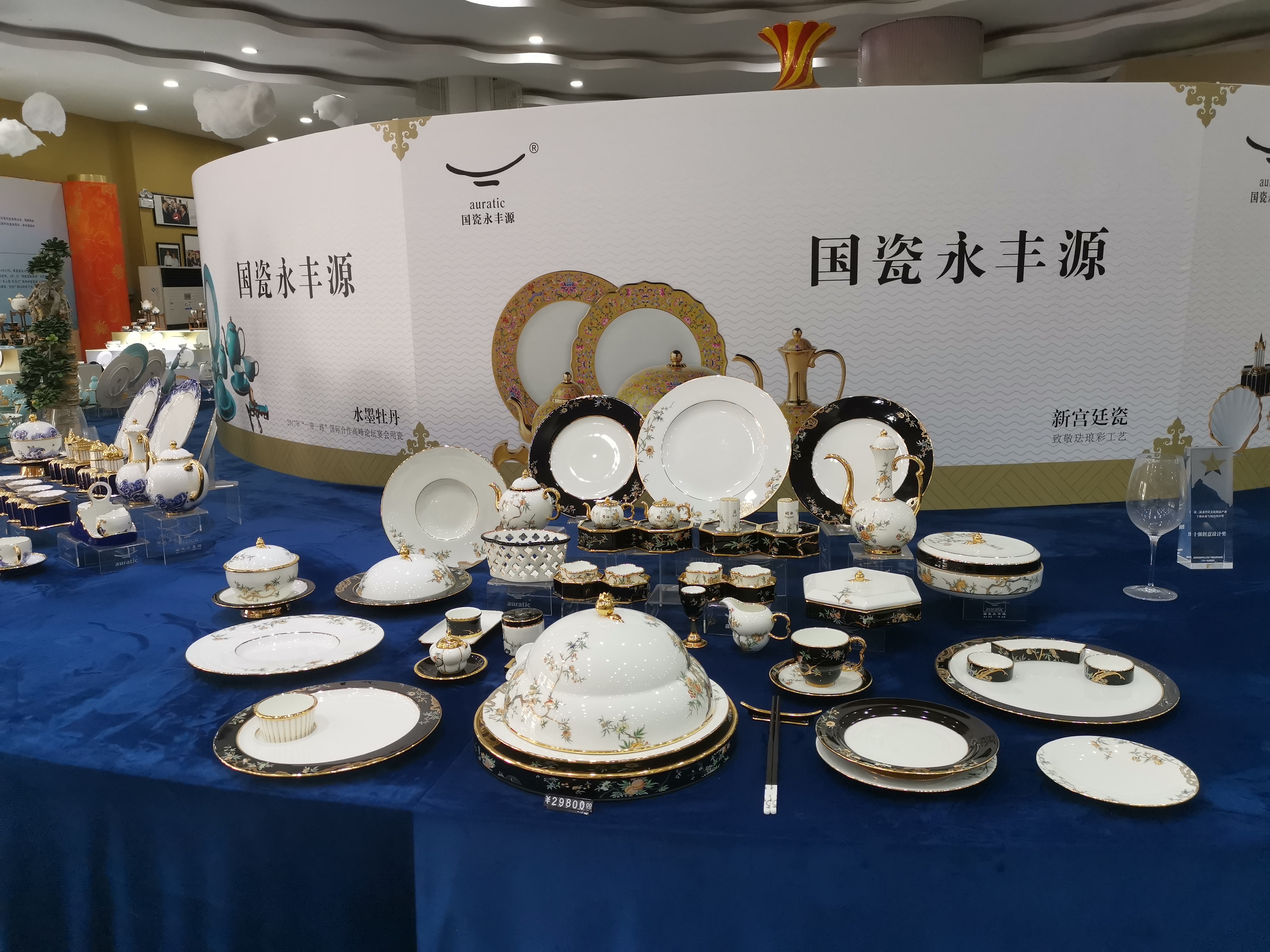 從2015年開始,國瓷永豐源生產(chǎn)的瓷器就頻繁出現(xiàn)在國際及國內(nèi)的重大會議的國宴用餐,以及慶典、節(jié)慶賀禮上。2018年以“先生瓷 ?四海升平”亮相博鰲亞洲論壇年會宴會,成功款待世界賓朋;2017年承接“一帶一路”國際合作高峰論壇餐具任務(wù);2016年承擔(dān)杭州G20峰會夫人午宴用瓷設(shè)計;2015年分別承攬中央政府贈送西藏50周年與新疆60周年大慶官窯定制任務(wù)……