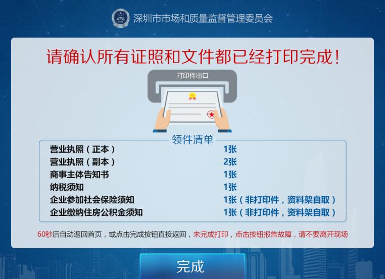 自助領(lǐng)證服務(wù)優(yōu)化深圳地區(qū)營(yíng)商環(huán)境,助力實(shí)體經(jīng)濟(jì)發(fā)展,同時(shí)進(jìn)一步完善光大銀行深圳分行網(wǎng)點(diǎn)綜合服務(wù)功能,打造專業(yè)、高效、便捷的“全流程”金融服務(wù)。給予客戶一次性可辦理公司成立的所有手續(xù)服務(wù),免去來回奔波的煩惱。具體操作如下: