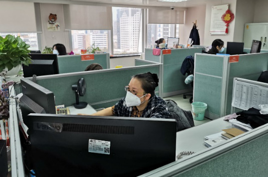 1月30日(大年初六)起,托管專崗?fù)聜兙洼喠鞲奥殘鲋蛋?,開展托管運營應(yīng)急保障工作。2月3日,托管部所有運營同事全體到崗,全面投入托管運營工作,服務(wù)分行300多家存量金融機構(gòu)客戶。首日復(fù)工,專崗?fù)聜冊缫炎龊昧藴蕚洌骱每谡?,佩戴一次性手套,對桌面、鍵盤、鼠標等用具進行酒精消毒,然后正式開啟一天緊張忙碌的工作序幕。