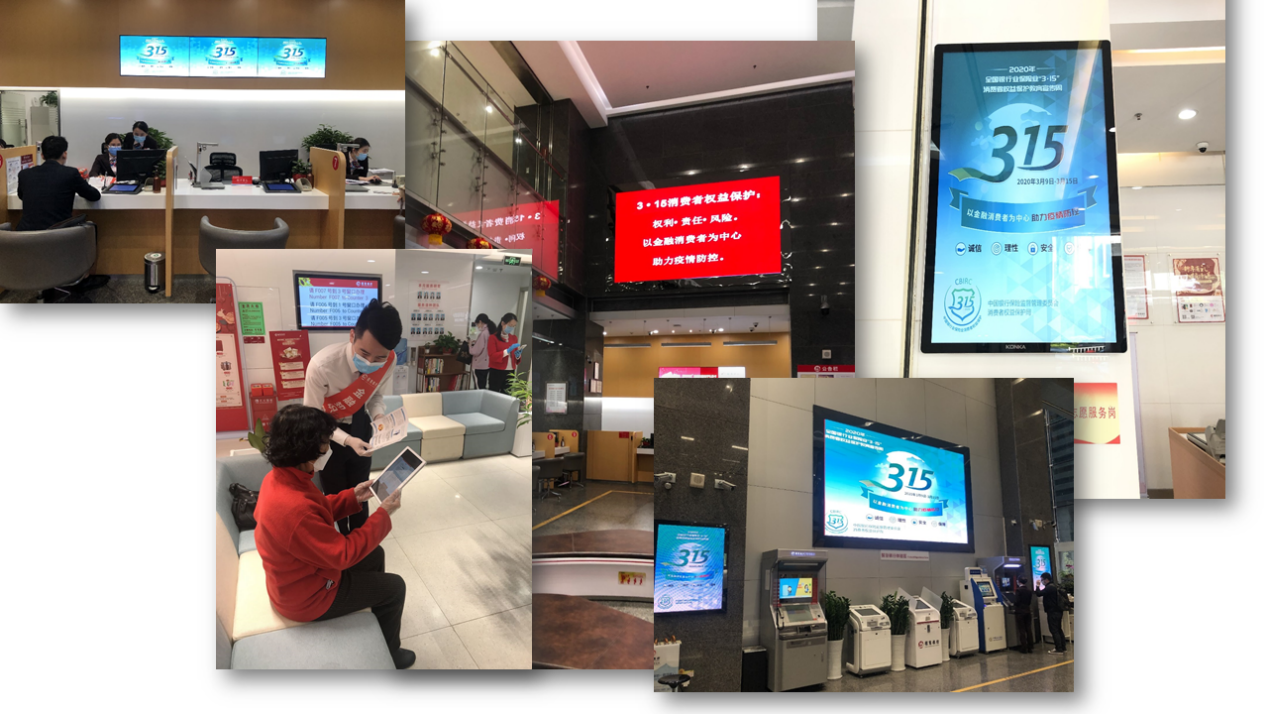 受疫情影響,在今年的3.15宣傳教育活動期間,招商銀行深圳分行因時制宜,充分借助互聯(lián)網(wǎng)媒體渠道,加大線上宣教推廣力度。其中,原創(chuàng)漫畫、視頻等已在中國銀行業(yè)協(xié)會、中國人民銀行深圳市中心支行、招商銀行總行以及信用卡中心的官方微信、微博等各大平臺競相上線,獲得了消費者的廣泛好評。同時,在手機(jī)銀行 App網(wǎng)點線上店開辟“消保有招”3.15專欄,不斷開創(chuàng)新的宣傳場景和消費者觸點。結(jié)合電臺廣播交通頻率1062、新聞898、音樂971等傳統(tǒng)媒體平臺在早晚高峰期循環(huán)播放活動主題,以短平快、覆蓋廣的方式大力推動金融宣教工作,進(jìn)一步擴(kuò)充宣傳渠道和受眾面。同時,以營業(yè)廳為陣地,通過跑屏、電子海報機(jī)、電視等多媒體設(shè)備播放宣傳素材,多種渠道共同推廣打造立體宣教格局,覆蓋更多消費者群體進(jìn)一步增強(qiáng)影響力。