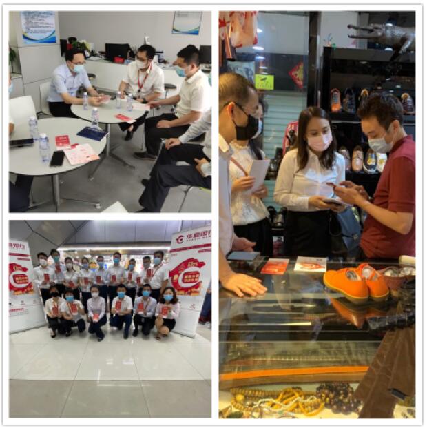 為扎實做好“六穩(wěn)”工作,貫徹落實“六保”任務,切實解決普惠金融、小微企業(yè)融資難融資貴等問題,華夏銀行深圳分行在主題活動期間組織分行業(yè)務骨干與經(jīng)營單位一同前往周邊大型市場、商戶聚集地對龍商貸(深圳版)進行推廣,宣傳金融標準在緩解融資難融資貴等工作中的積極作用,增強公眾的金融風險意識。