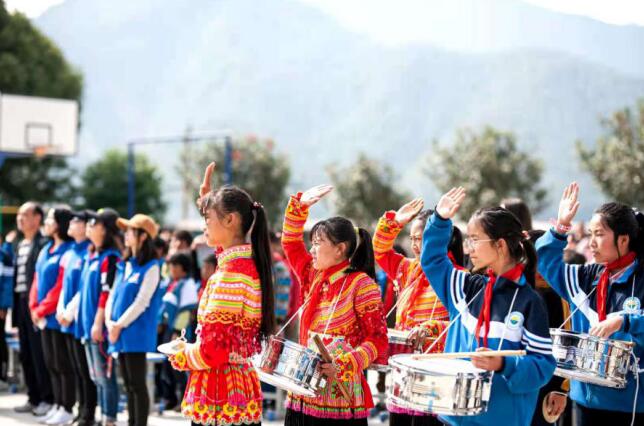 圍繞運(yùn)動(dòng)會(huì),志愿者帶領(lǐng)孩子做了各種準(zhǔn)備。體育科班出身的志愿者,為孩子們帶來(lái)了足球、籃球和排球課。雖然上課的時(shí)間不長(zhǎng),可孩子們對(duì)這些運(yùn)動(dòng)表現(xiàn)出極大的熱情?;@球架下站滿了個(gè)子高矮不一的學(xué)生,山間的空地成為足球場(chǎng),拋扔排球成為新的運(yùn)動(dòng)項(xiàng)目。音樂(lè)老師為學(xué)校組織了第一支小樂(lè)隊(duì),美術(shù)老師教孩子們畫(huà)出了他們心目的亞運(yùn)會(huì)……每一個(gè)孩子都自信地做特長(zhǎng)展示。